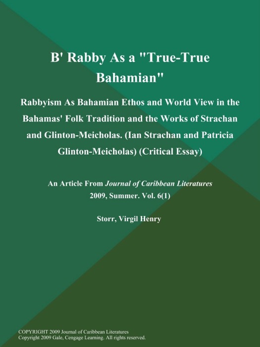 [Download] "B' Rabby As a "True-True Bahamian": Rabbyism As Bahamian Ethos and World View in the Bahamas' Folk Tradition and the Works of Strachan and Glinton-Meicholas (Ian Strachan and Patricia Glinton-Meicholas) (Critical Essay)" by Journal of Caribbean Literatures # eBook PDF Kindle ePub Free